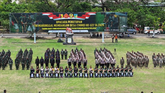 KEDIRI – Kepala Staf Angkatan Darat (KSAD) Jenderal TNI Maruli Simanjuntak, M.Sc secara resmi menutup kegiatan Tentara Manunggal Membangun Desa (TMMD) ke-122 Kodim 0809/Kediri, Kamis (31/10/2024). Acara penutupan digelar di Lapangan Brigif 16/WY, Kediri, dengan berbagai pertunjukan dari drumband Genta Buana SMAN 5 Taruna Brawijaya, pencak silat gabungan TNI, Polri, dan Satpol PP, serta penampilan anak disabilitas bernama Kenzo yang menyanyikan sebuah lagu.